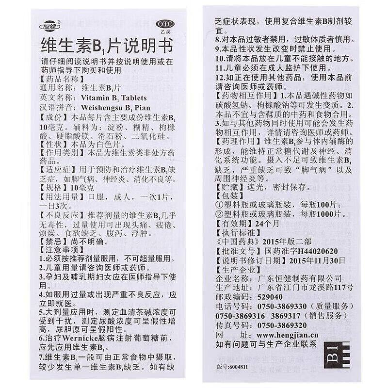 您的位置: 恒健维生素B片片 10mg*100片/瓶 消化不良减肥神经炎脚气病脚气