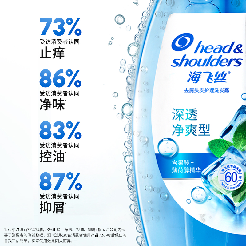 海飞丝止痒去味去屑洗发水头皮护理控油蓬松0感瓶薄荷洗头膏男士