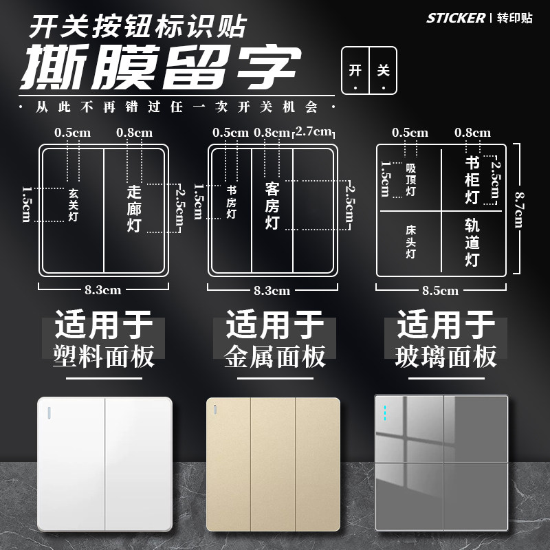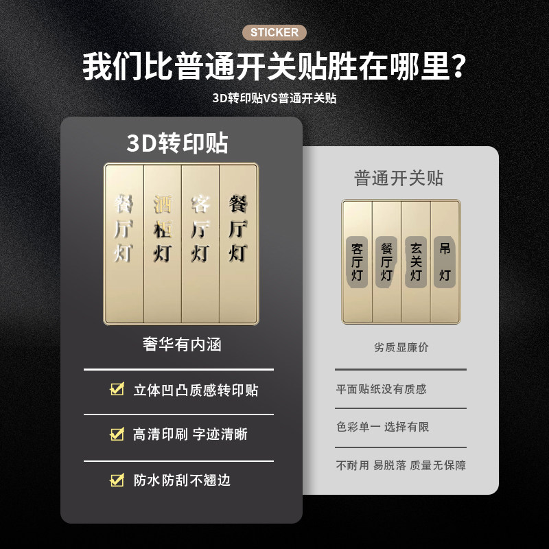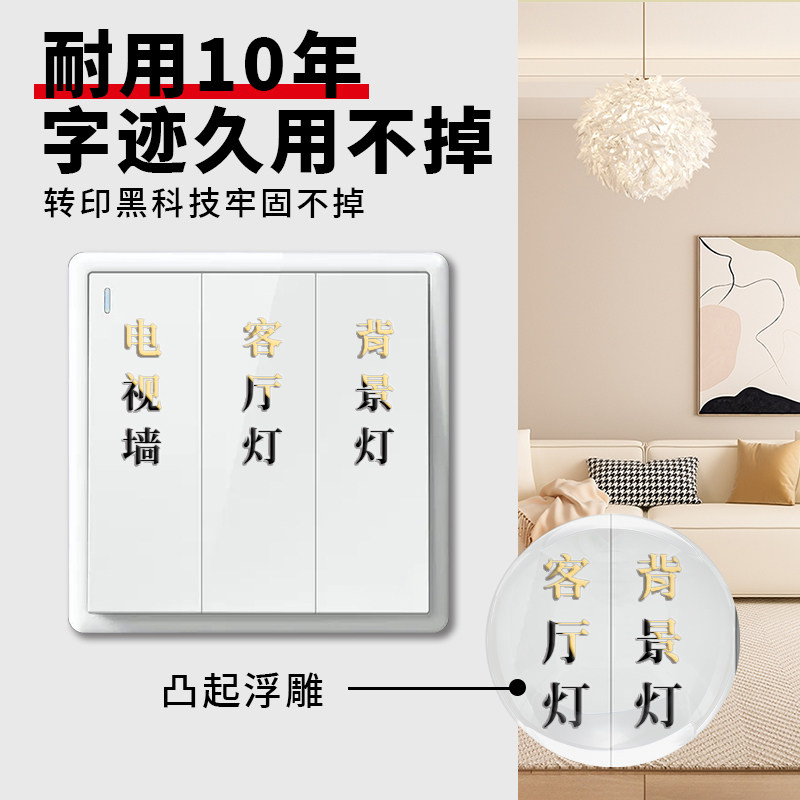 您的位置: 2025新款灯开关标识贴家用立体标签定制3d插座面板装饰字高级贴纸