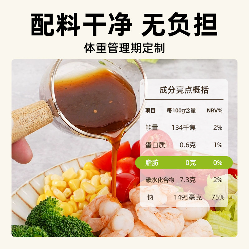 油醋汁280g*2瓶0添加0脂沙拉汁蔬菜沙拉蘸料轻食餐水煮菜沙拉调味