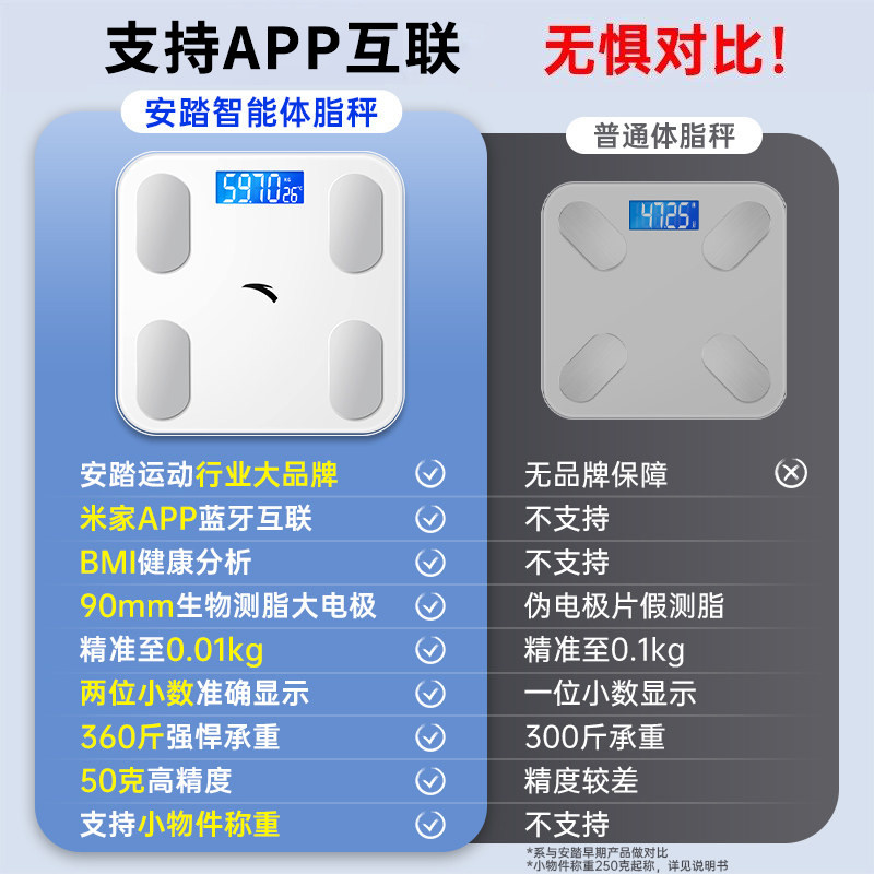 您的位置: ANTA安踏体重秤家用精准小型电子体脂秤智能充电款减肥专用人体称