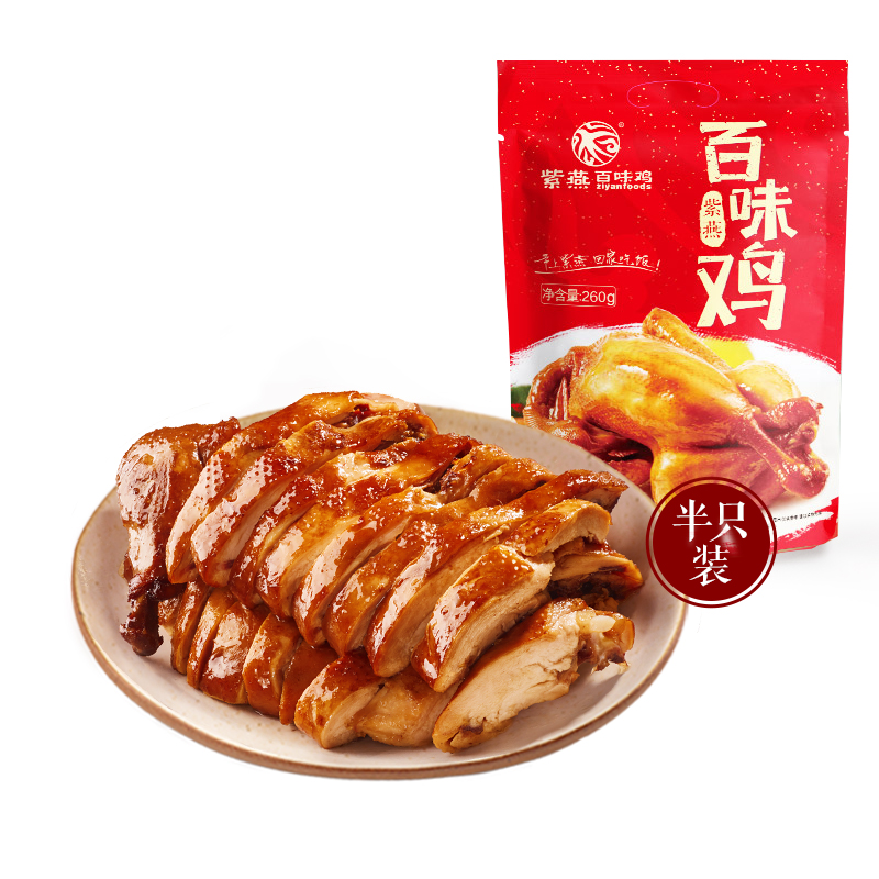 您的位置: 紫燕百味鸡招牌百味鸡260g熟食烤鸡即食卤鸡肉手撕烧鸡扒鸡零食品