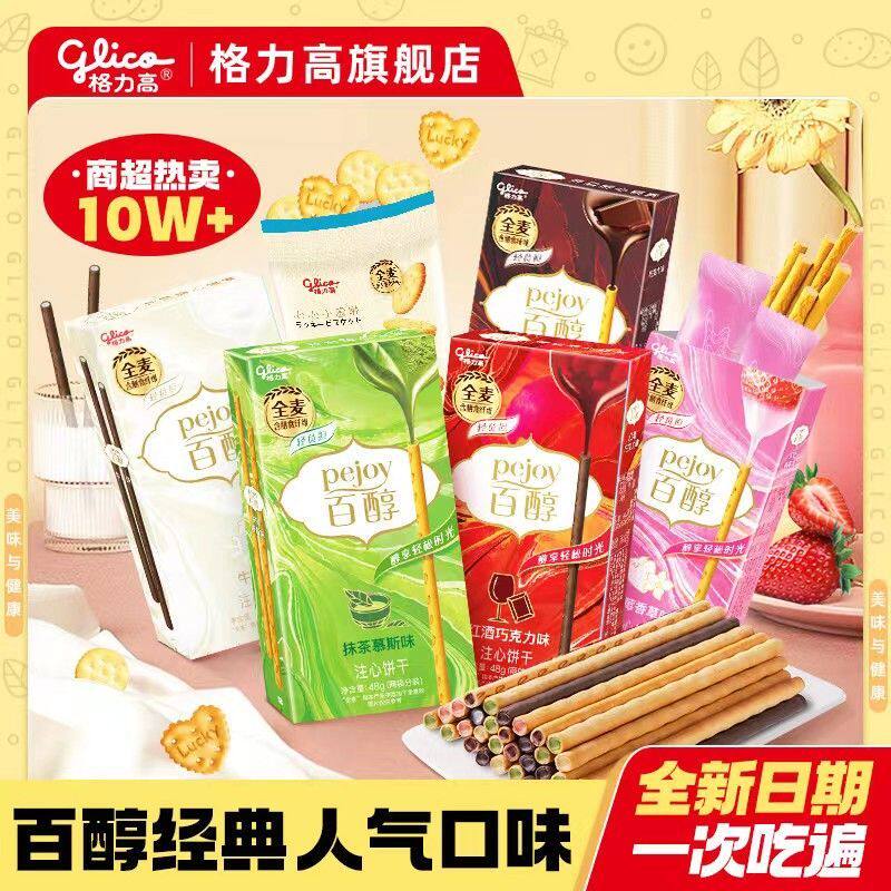 您的位置: 格力高百醇5盒加心心小圆饼巧克力抹茶味注心饼干棒休闲零食礼物