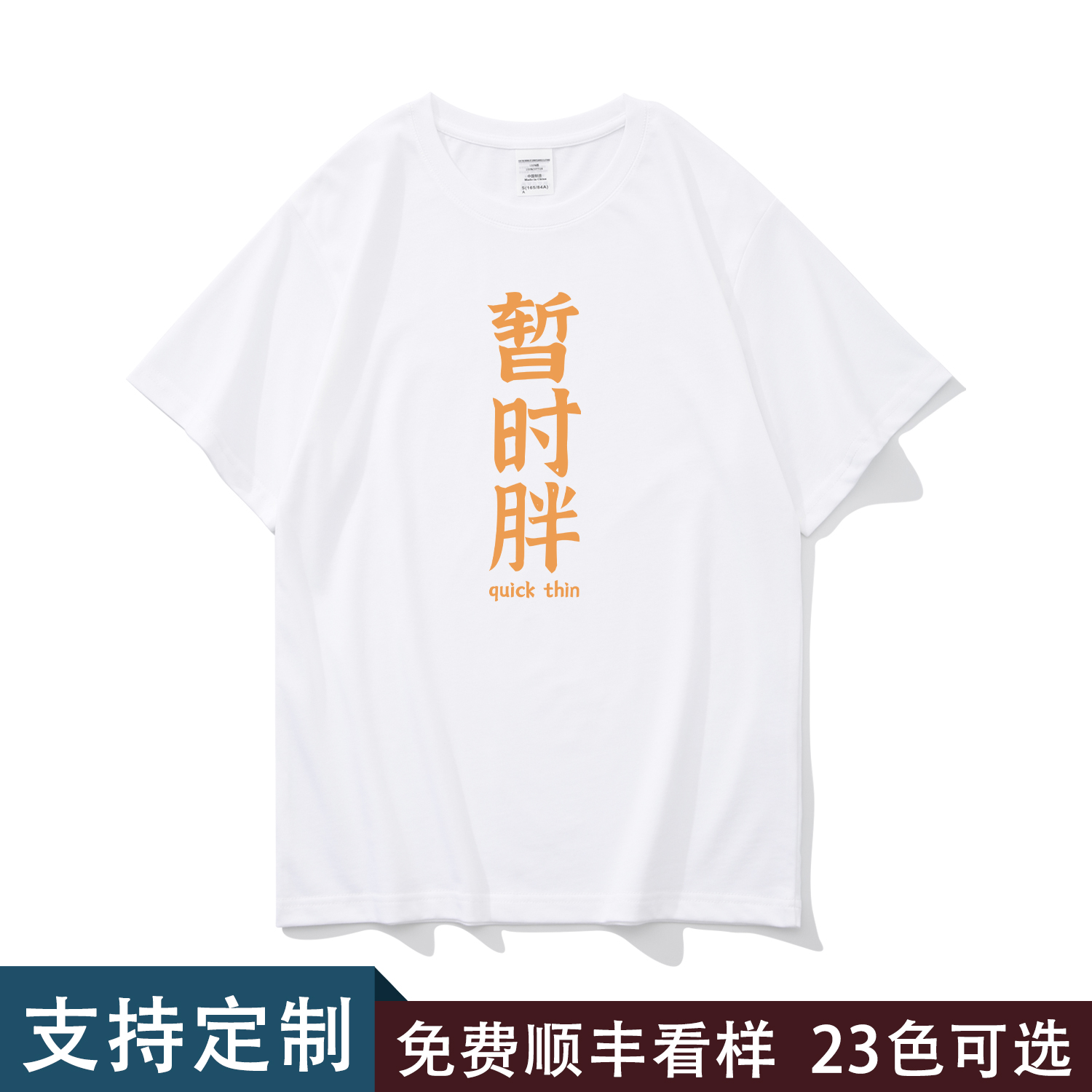 夏季暂时胖趣味文字男生减肥运动短袖T恤宽松纯棉大码半袖上衣潮