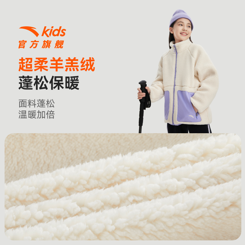 安踏儿童女童外套秋冬款加绒新款保暖防寒羊羔绒女孩毛毛加厚上衣