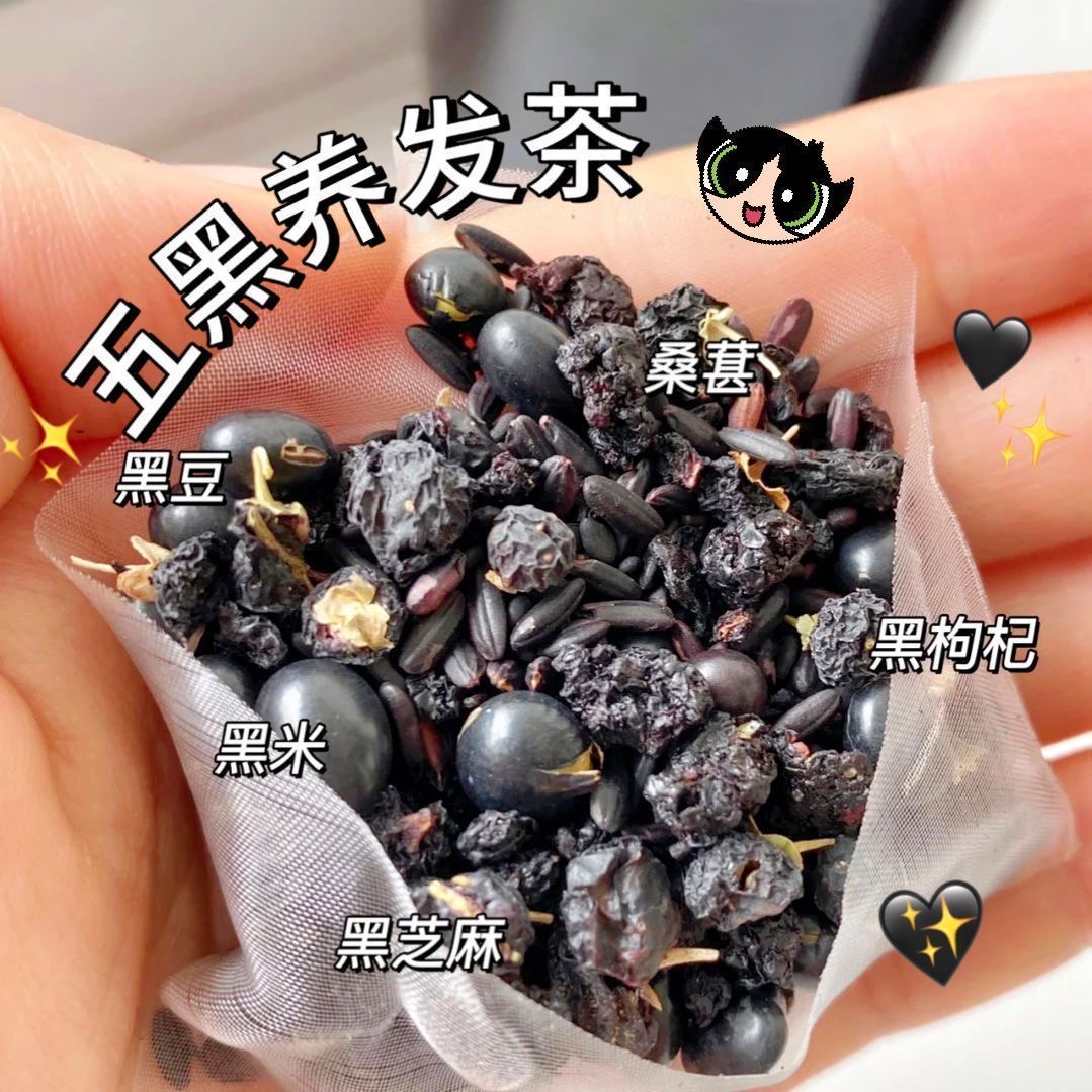 女士专用减肥茶五黑茶女生养发茶桑葚黑枸杞黑芝麻黑豆黑米组合滋补养生茶健康适合下午茶饮用温和滋补解油腻口感佳很美味