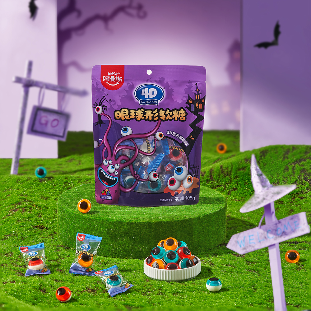 淘宝天猫阿麦斯4D果汁软糖节日糖果眼球形搞怪软糖儿童零食礼物108g优惠券折扣价格–彩云间