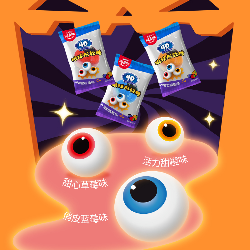 您的位置: 阿麦斯4D果汁软糖节日糖果眼球形搞怪软糖儿童零食礼物108g