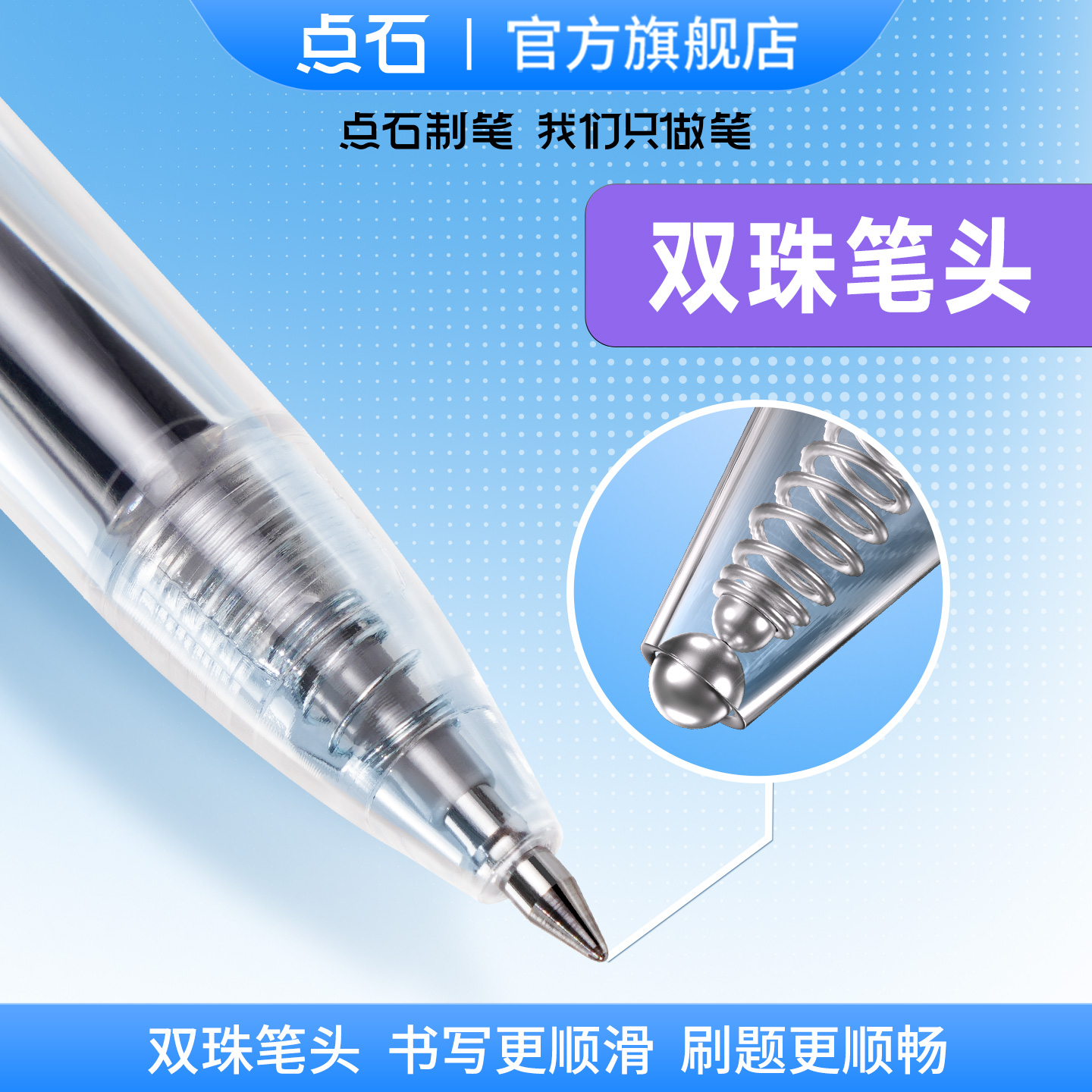 > 【新品】点石制笔巨能刷刷题笔双珠速干按动中性笔0.5mm简约高颜值考试签字黑红蓝顺滑大容量水性圆珠笔0205