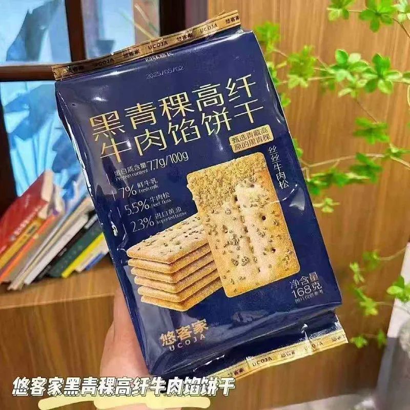 悠客家168g榛子黑巧双层薄脆黑青稞高纤牛肉夹心饼干休闲解馋零食