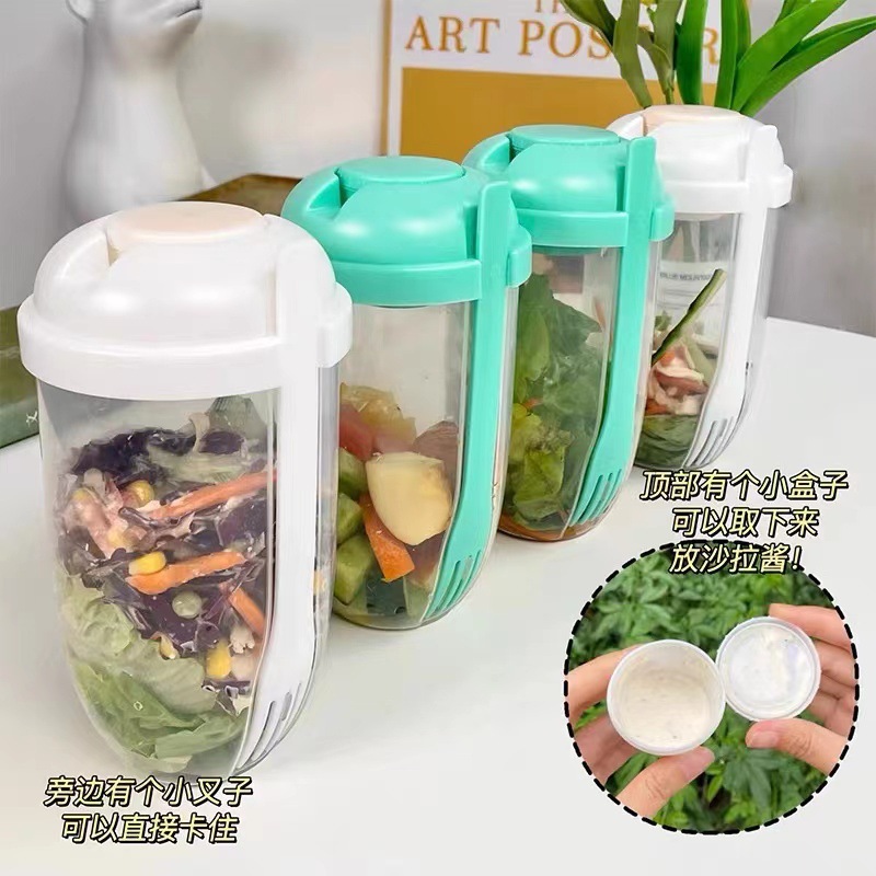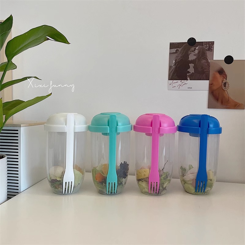 ins风早餐沙拉杯带叉子带盖减肥外出随身便携水果蔬菜轻食牛奶杯