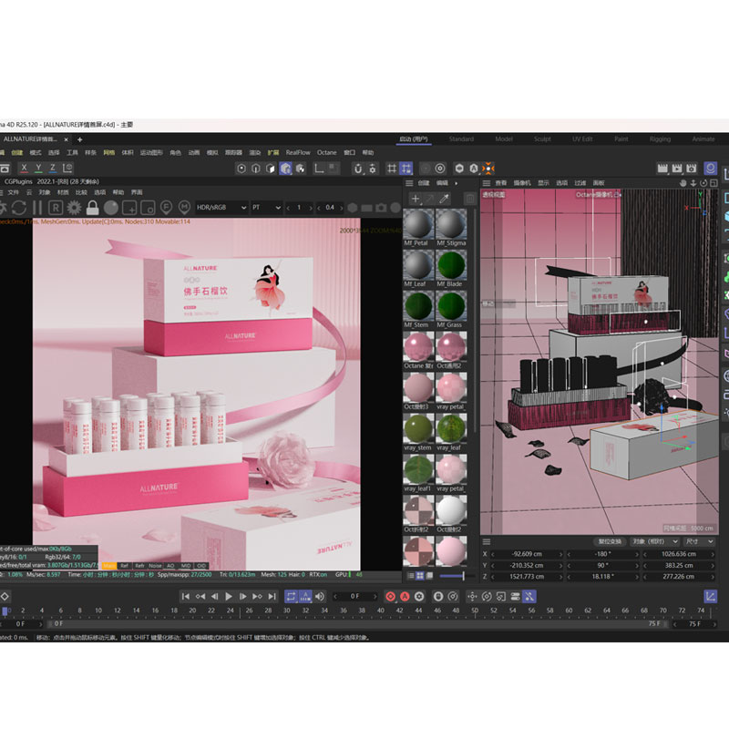 美妆265C4D场景素材减肥饮模型OC渲染工程口服液电商海报源文件