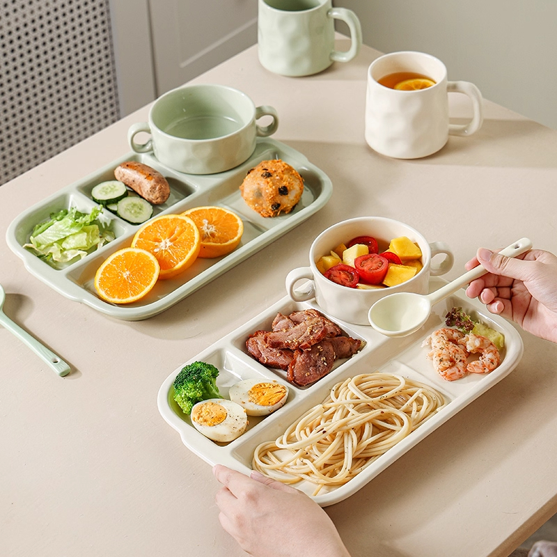 您的位置: 奶油风陶瓷分格盘子减脂分餐盘减肥食家用儿童早餐盘月子餐具