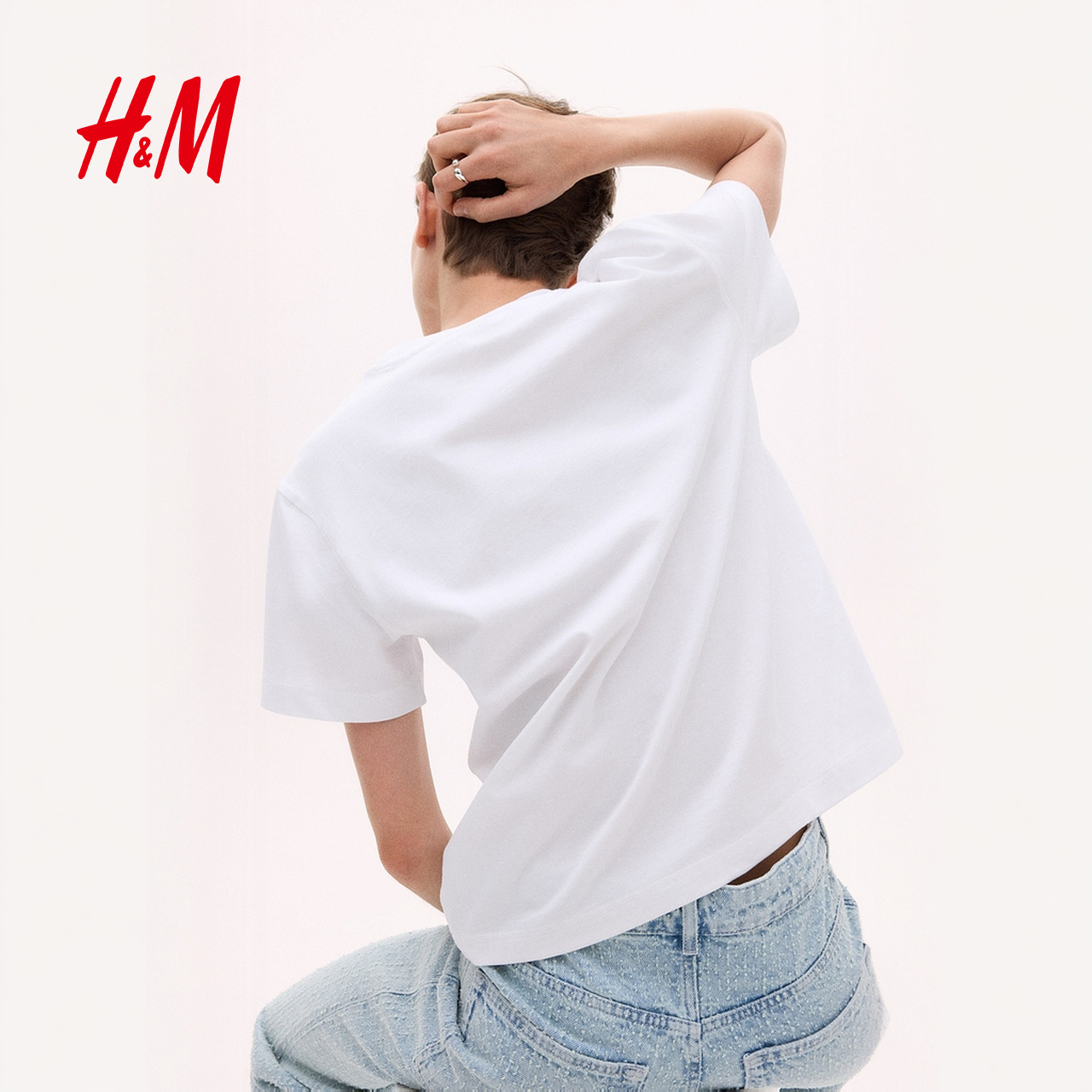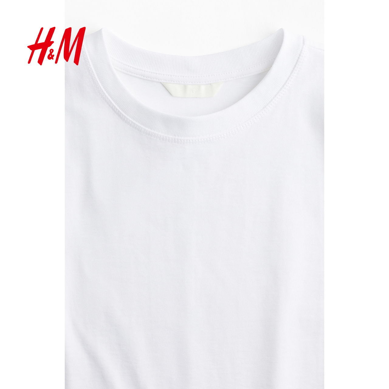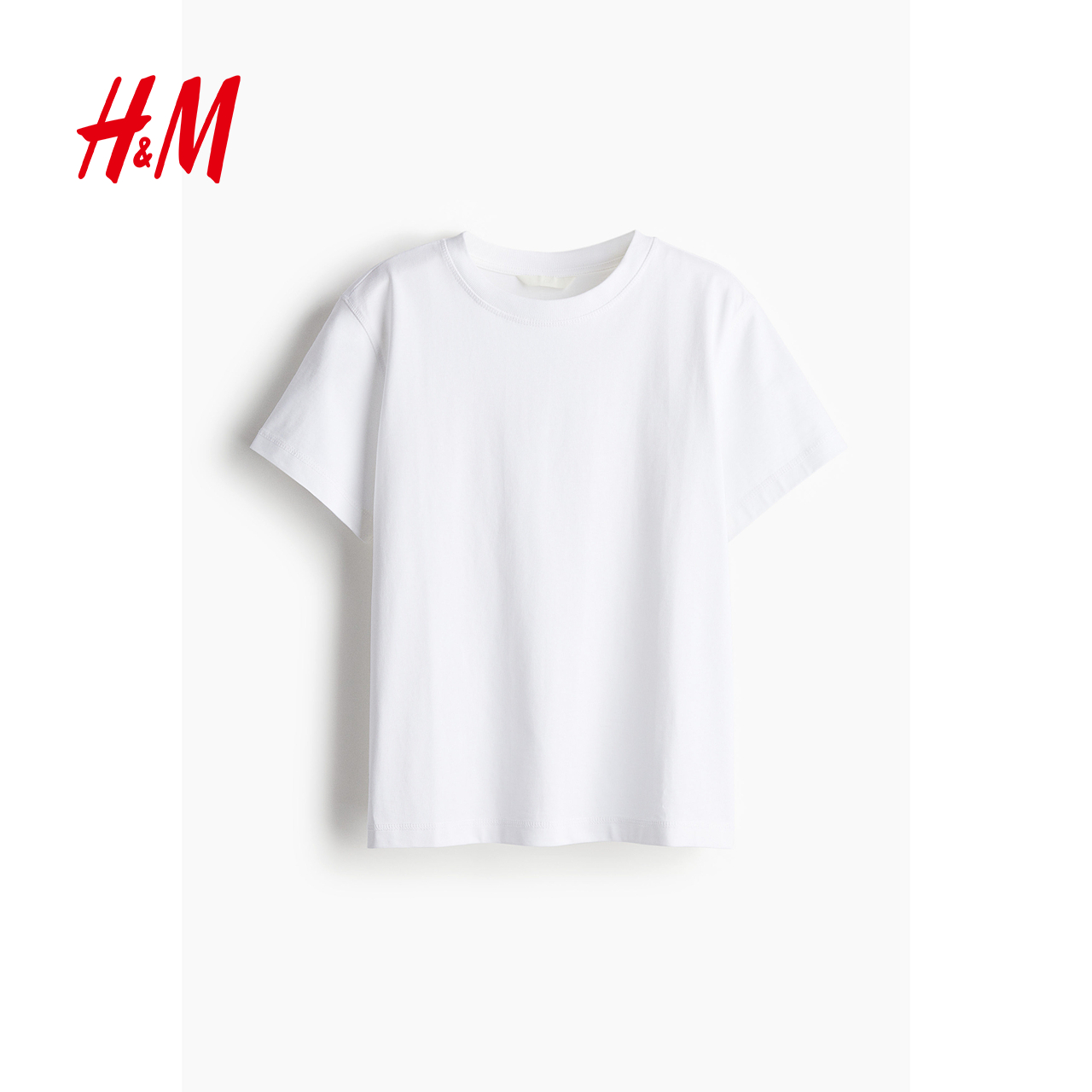 HM女装T恤秋季舒适宽松圆领美式棉质简约打底内搭短袖上衣1290372