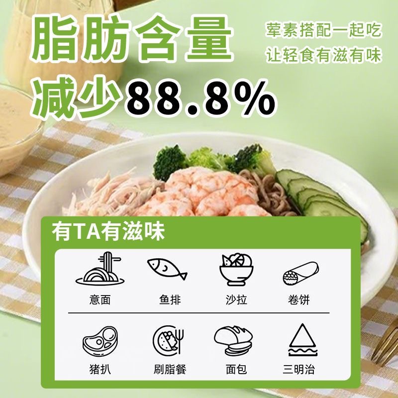 沙拉酱0脂肪减肥0卡0反式脂肪酸无糖无添加剂减脂酱料女神健身搭档低热量蔬菜沙拉水果凉拌烘焙酱料浓郁口感醇厚低负担轻食伴侣