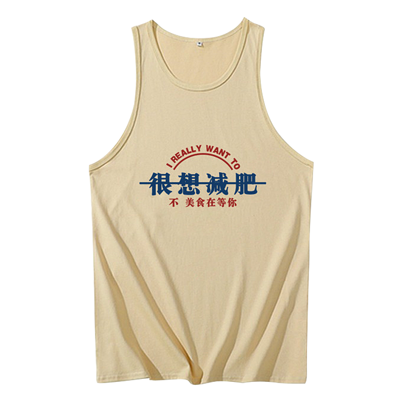 很想减肥背心国潮复古搞笑文字不美食在等你无袖t恤男运动夏季装