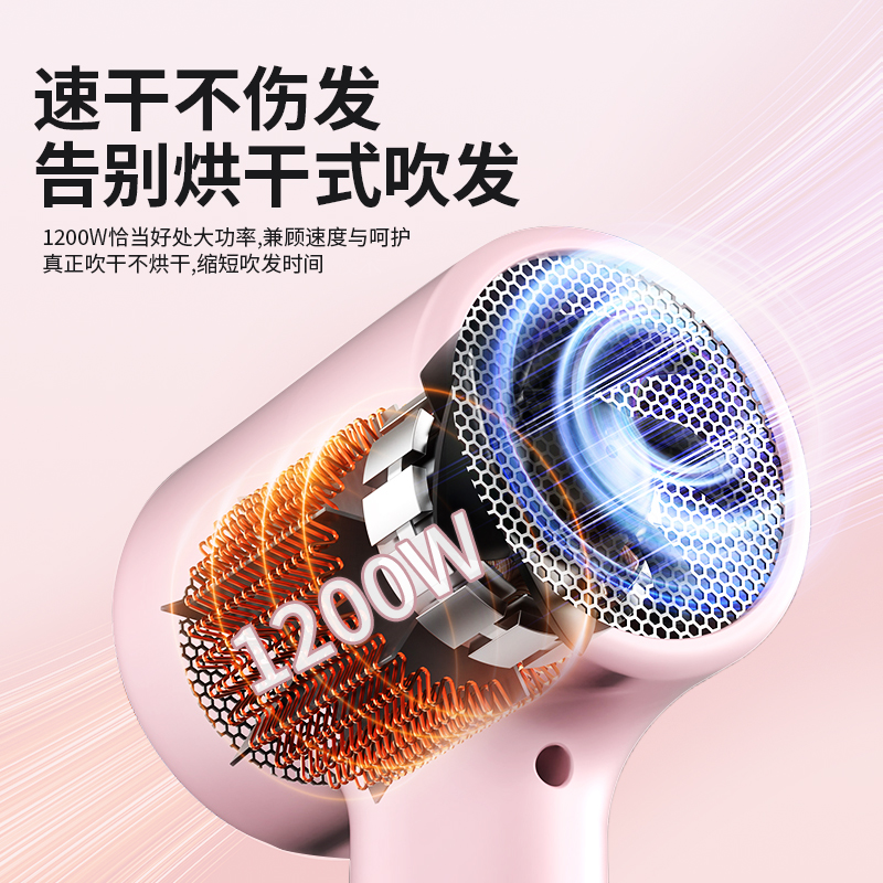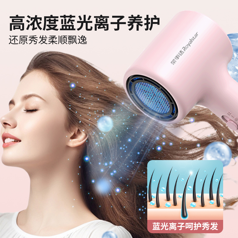 【赠送可拆式集风嘴】荣事达蓝光离子大功率高速吹风机,速干不伤发,告别烘干式吹发,轻巧机身一拎便知,久吹造型也不累手,家用旅行宿舍更方便,1200W功率更安全,小巧轻便约300克,后盖防卷发,抚平毛躁,轻便小巧,小仙女必备~