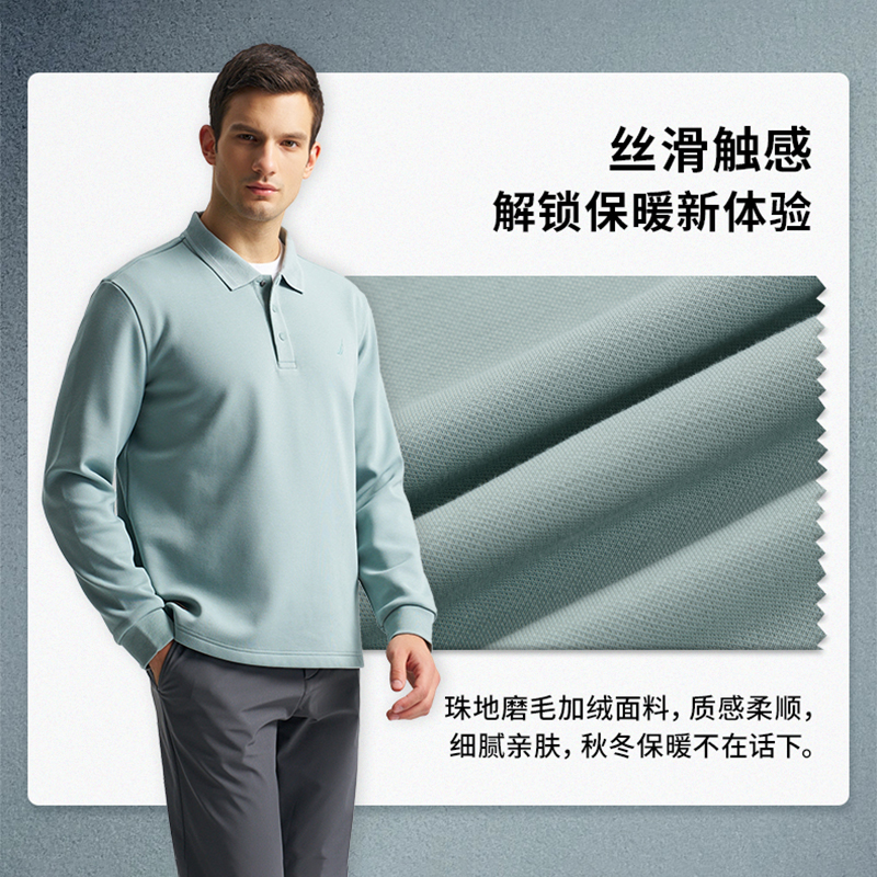NAUTICA/诺帝卡男装秋冬磨毛加绒保暖舒适长袖POLO衫KO4401