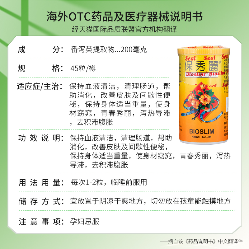 保秀丽减肥丸45粒香港进口窈窕茶叶皮肤腹胀通便清理肠胃便秘瘦身