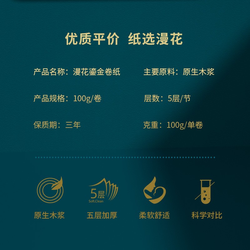 漫花无芯卷纸24卷,5层臻厚湿水不易破,柔如棉韧如丝,密韧纤维科学配比,无尘屑,无添加,全家老小皆可用,漫花一直坚持做健康好纸~
