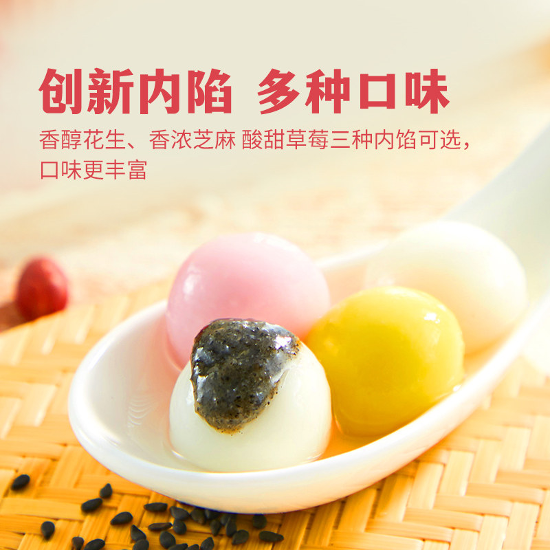 > 思念小小汤圆多种口味水煮黑芝麻草莓花生300gX1包三合一元宵