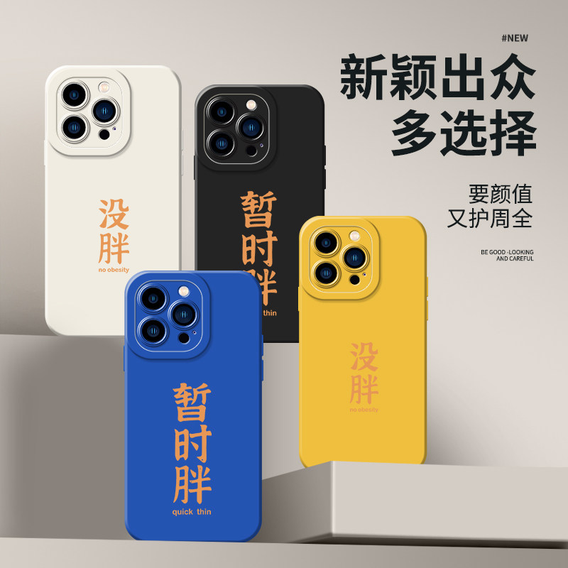没胖手机壳适用iPhone15系列小米14暂时胖13文字12情侣11趣味华为mate60自律p70减肥xr励志p50一对小众高级感