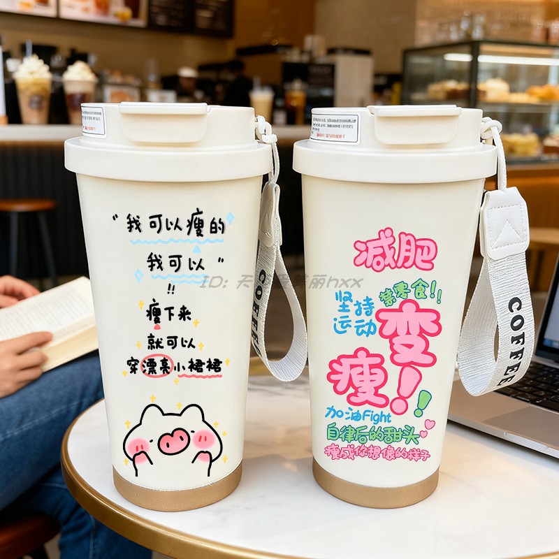 个性减肥保温杯要瘦不锈钢咖啡杯男女学生可爱吸管杯便携卡通水杯
