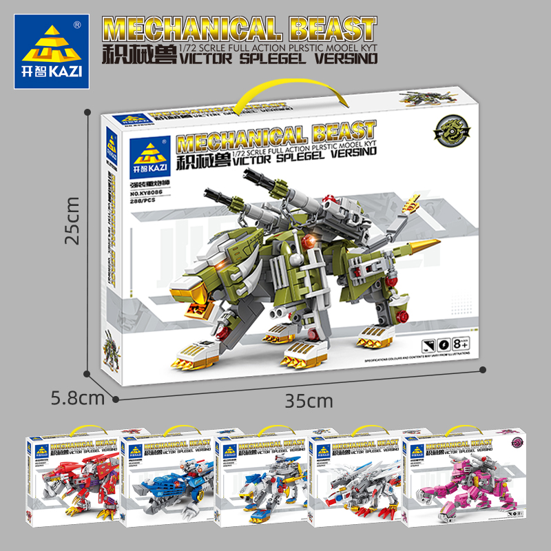 开智积木强装重炮师爆烈龙鳄鱼奔速狼组装模型男孩小颗粒拼装玩具