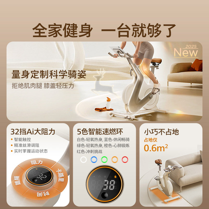 飞利浦小金鹿动感单车家用静音智能室内减肥健身房自行车专用器材