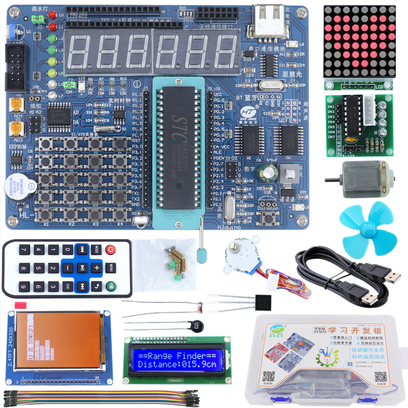 51单片机开发板STC89C52RC学习实验板可升级AVR/STM32盒装HL-1