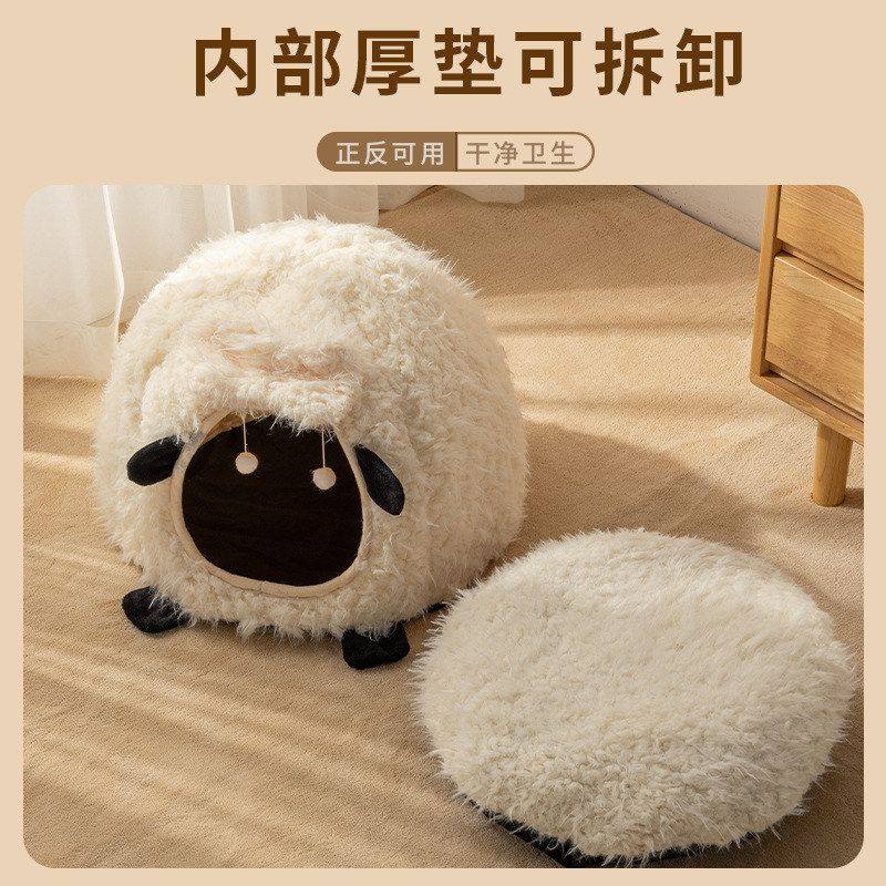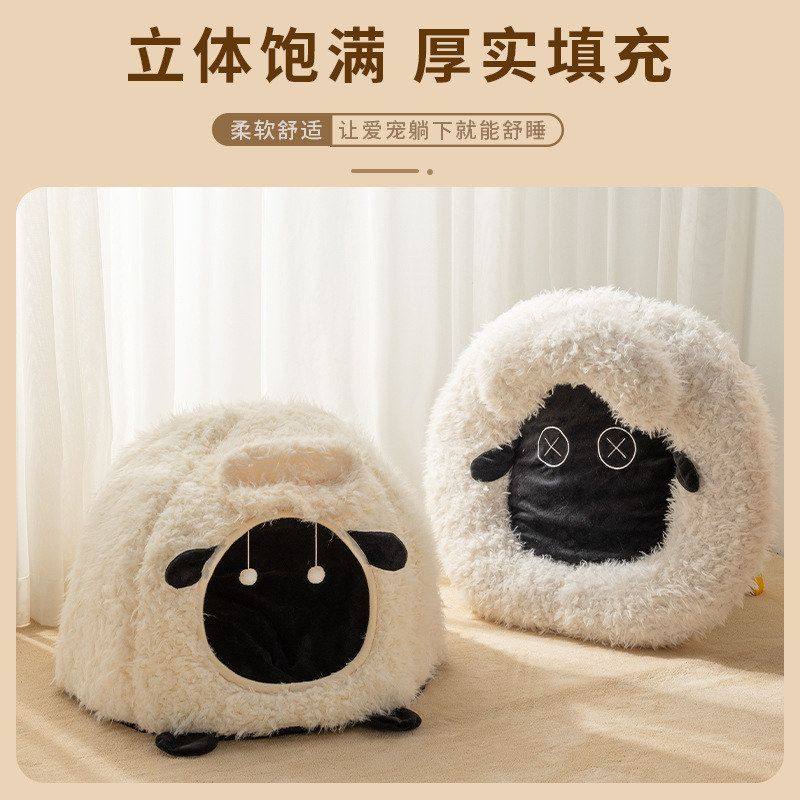 冬季羊窝系列封闭式安全感猫咪睡觉窝圆形猫窝冬季保暖狗窝宠物窝