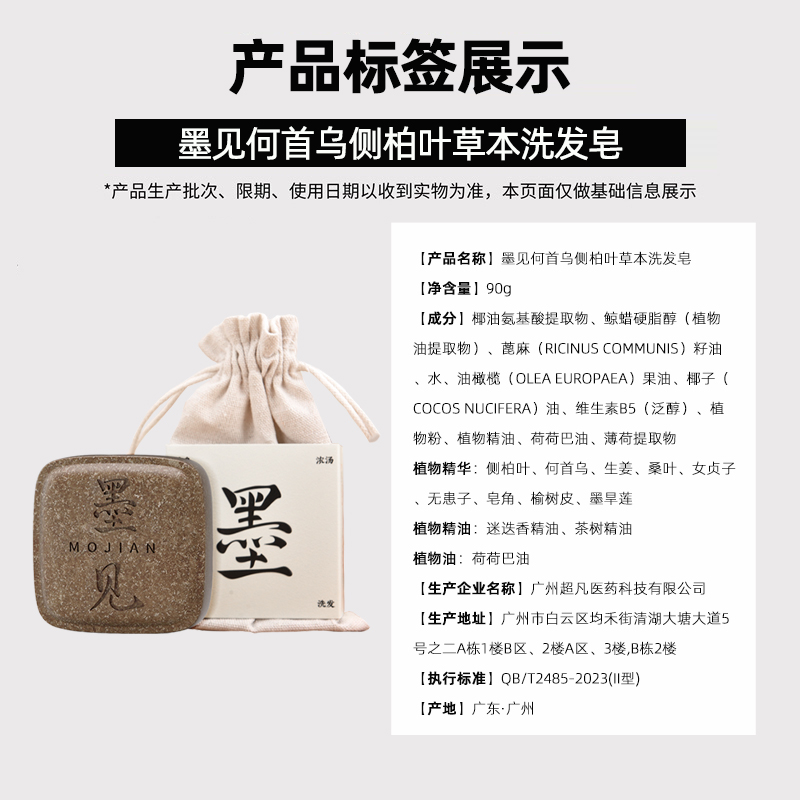 > 墨见何首乌侧柏叶草本洗发皂滋养护发控油去屑防断洗发水洗头香皂