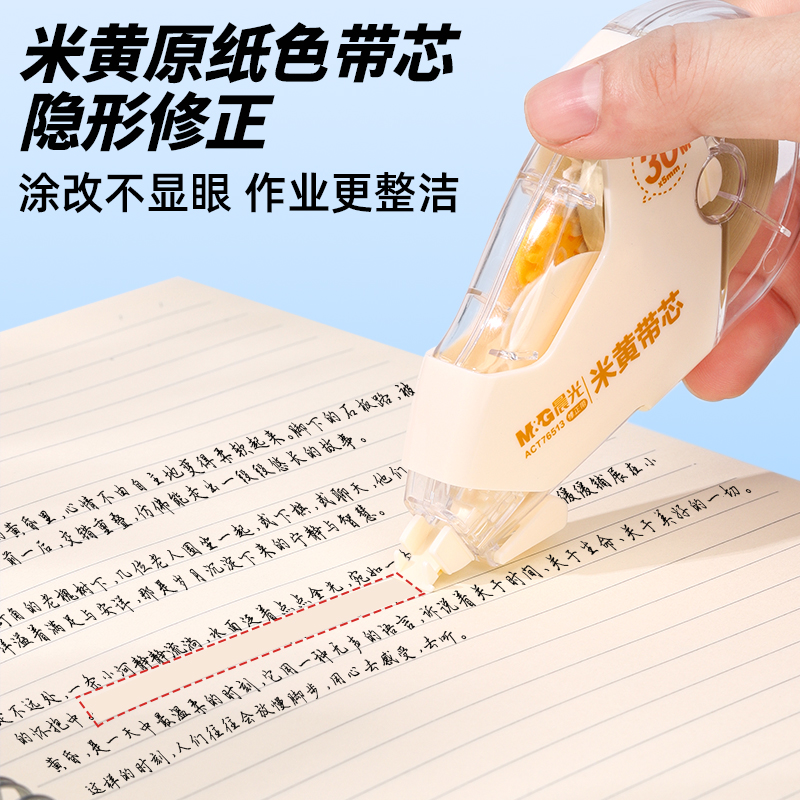 晨光米黄色修正带初中生专用涂改带简约风隐形修正带小学高中生改正带高颜值大容量实惠装顺滑静音护眼原纸色