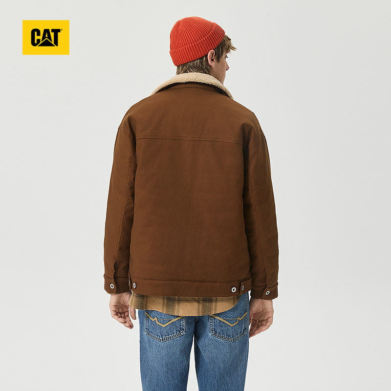 CAT卡特25秋新品男士户外休闲工装风格翻领羊羔毛领短款羽绒服