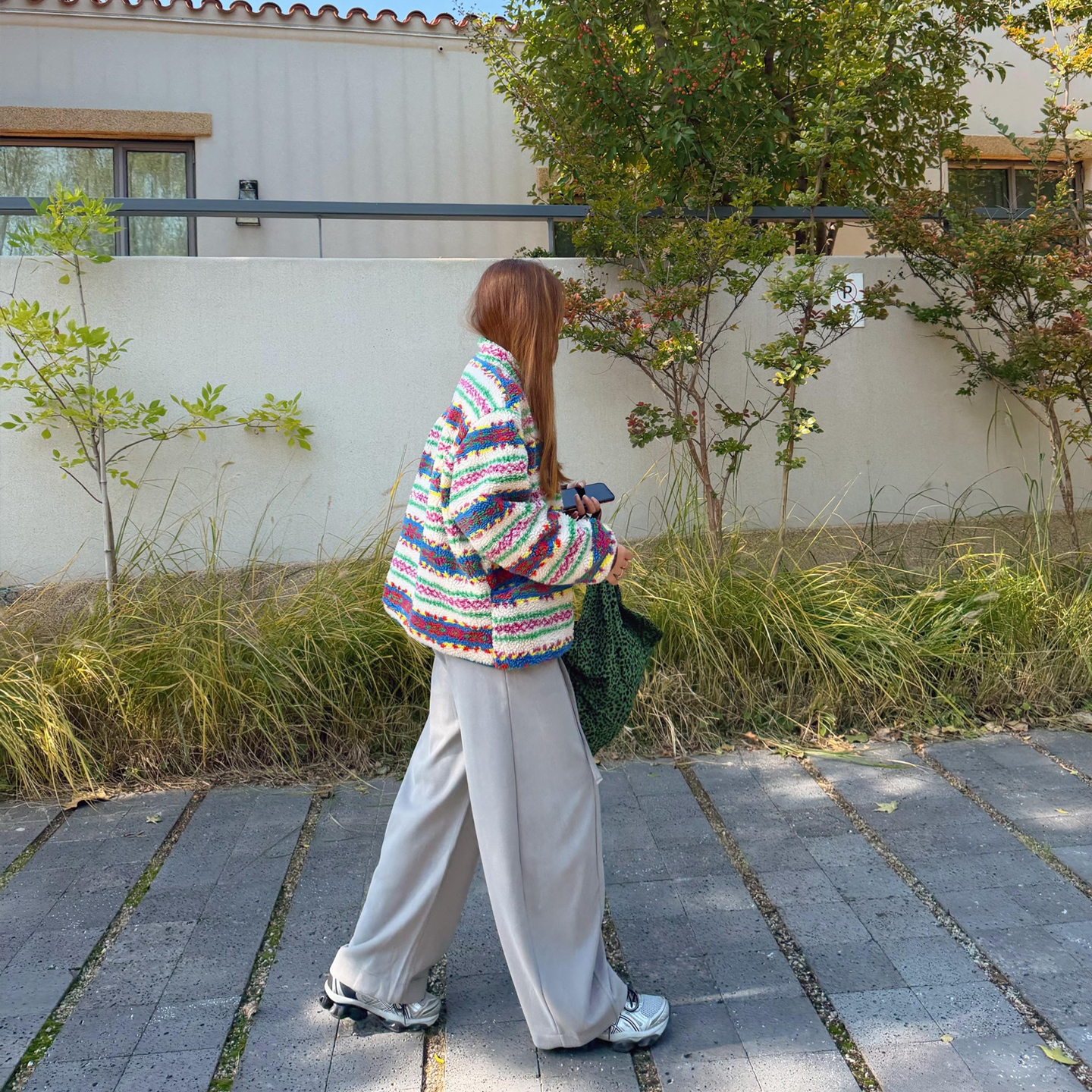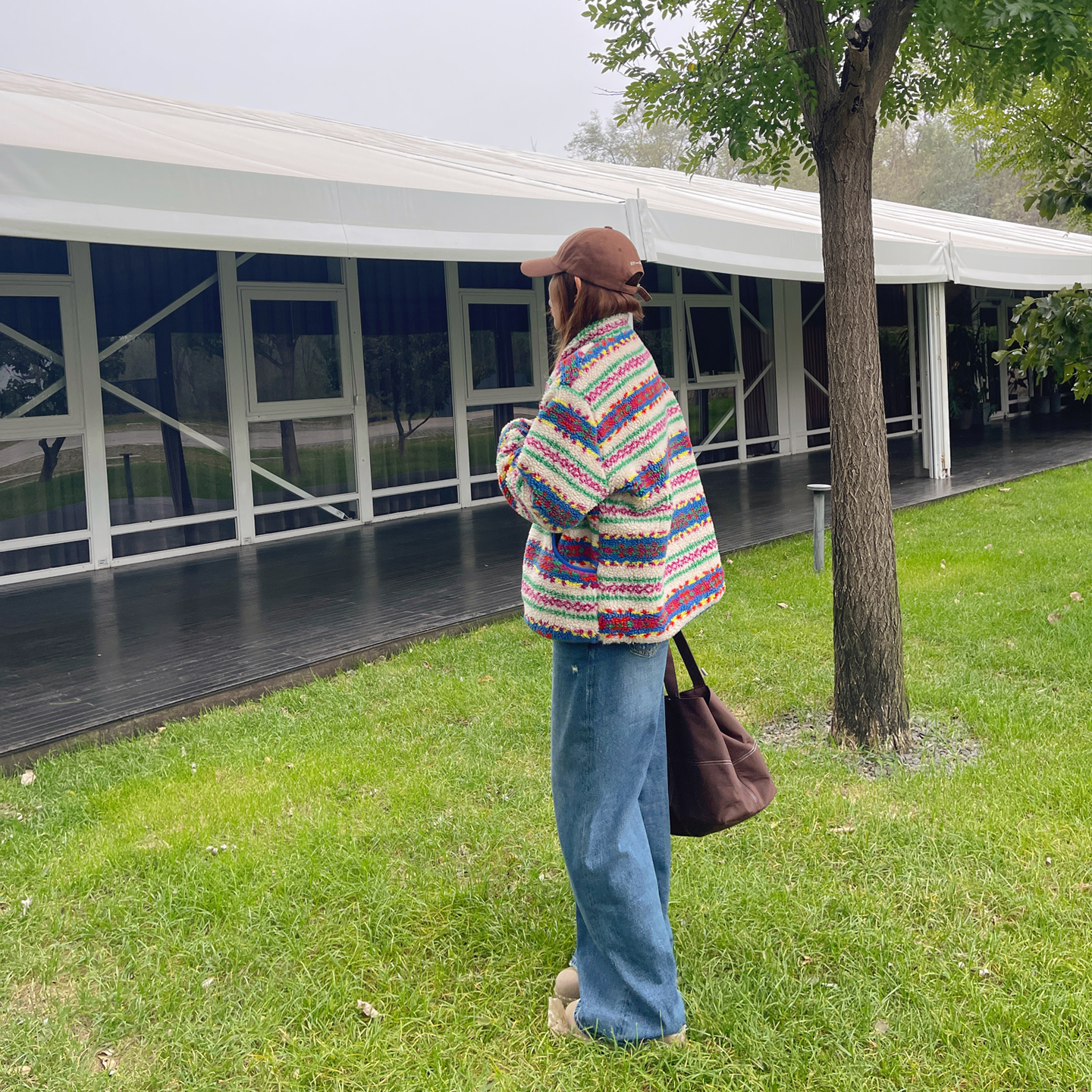 您的位置: KOGIRL冬季加厚韩系博主款羊羔毛彩条保暖拉链休闲宽松外套上衣女