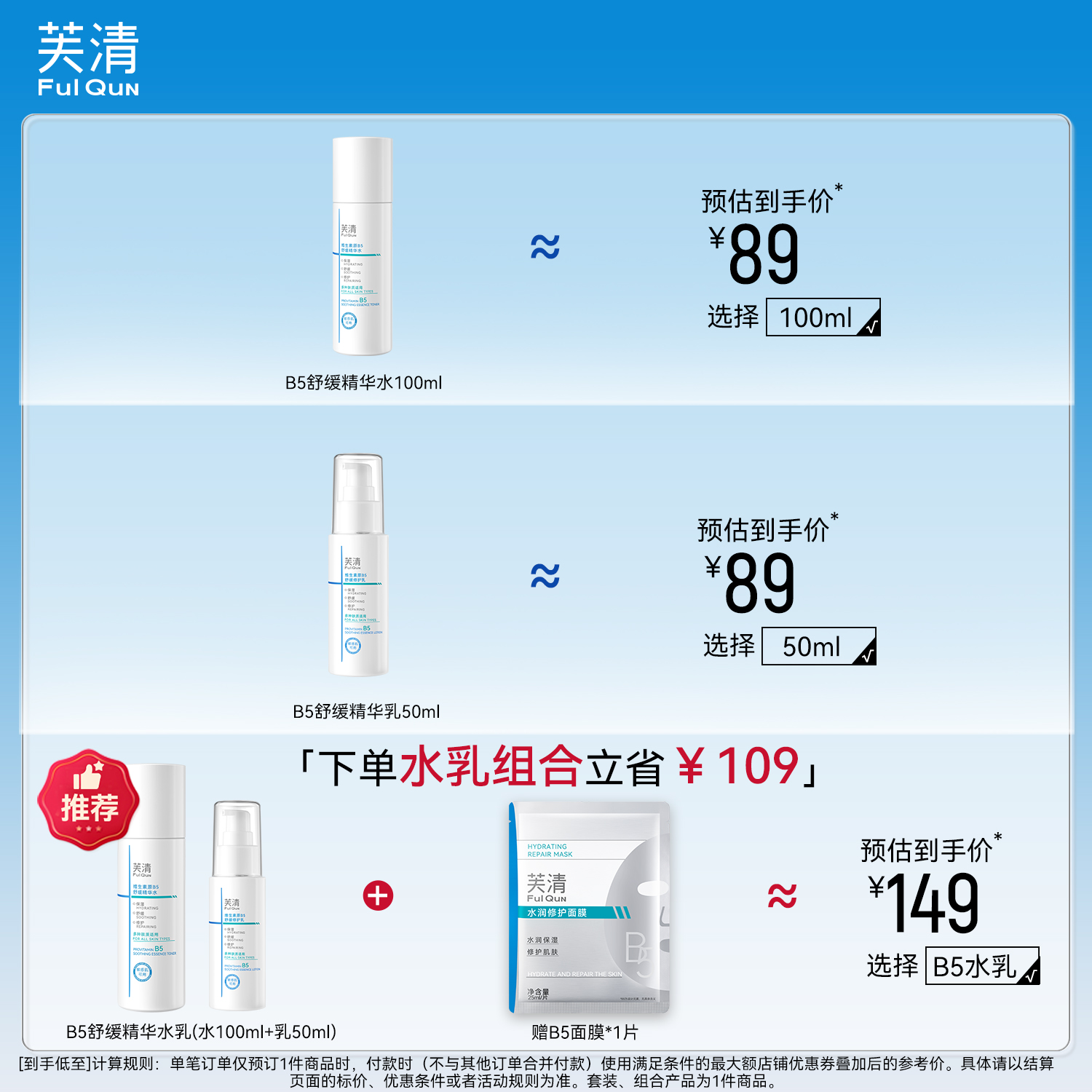 淘宝天猫芙清B5水乳套装修护补水保湿舒缓敏感肌湿敷爽肤水乳液官方旗舰店优惠券折扣价格–彩云间