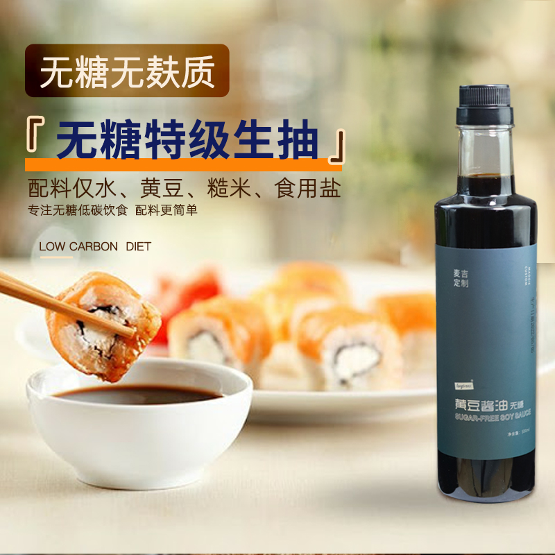 您的位置: 麦吉无糖无麸质生抽黄豆酱油零0添加糖低碳水0脂控糖生酮人群特级