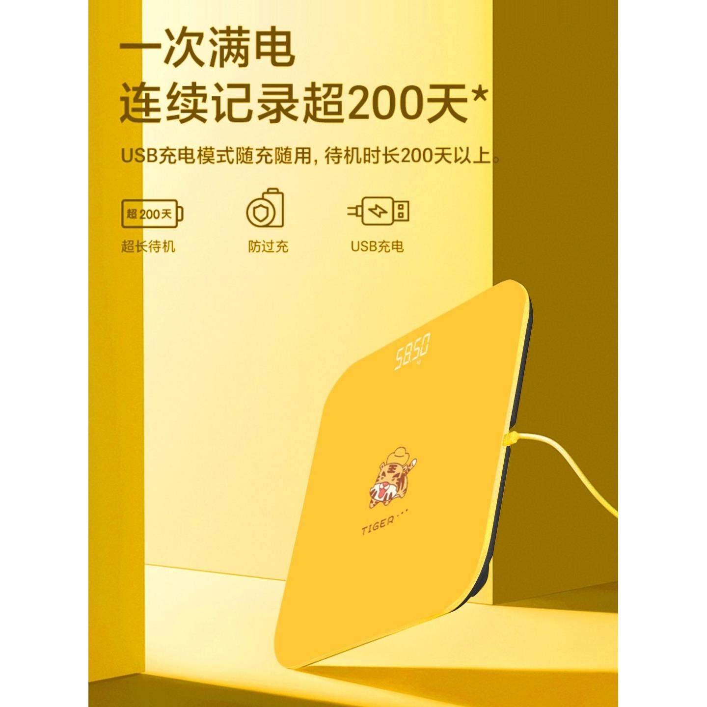 新款虎年图案电子称家用精准小型卡通隐屏体重秤USB充电男女减肥