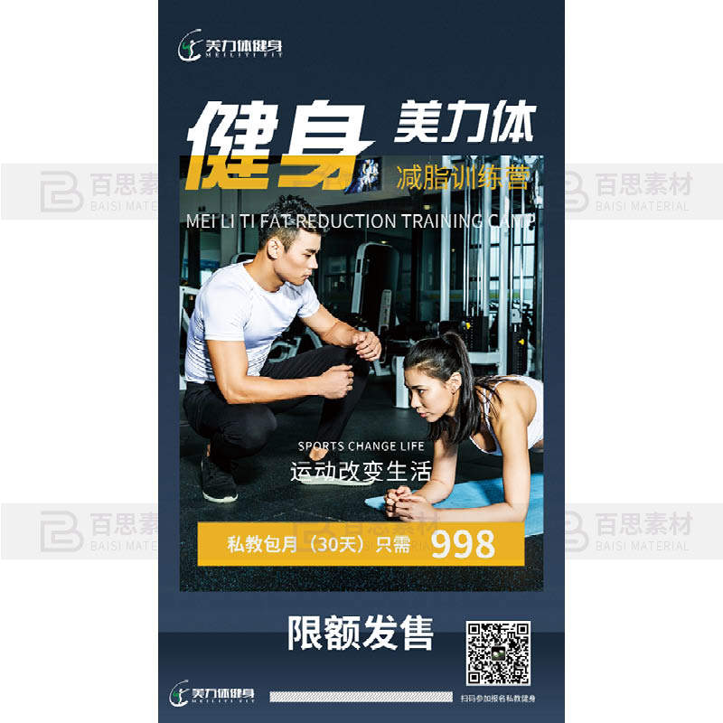 淘宝天猫创意运动健身减肥瘦身瑜伽体育训练系列宣传海报模板PSD设计素材优惠券折扣价格–彩云间