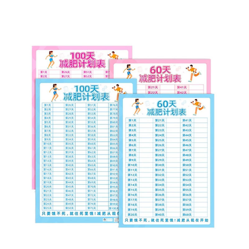 减肥打卡记录表瘦身时间计划监督减肥自律神器激励提醒贴纸60天100天减肥自律励志墙贴健身运动励志日历