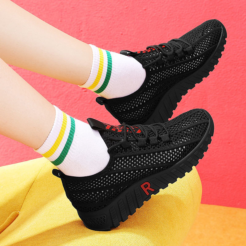 您的位置: 黑色网眼运动鞋女厚底新款透气舒适休闲鞋软底网面镂空防滑跑步鞋
