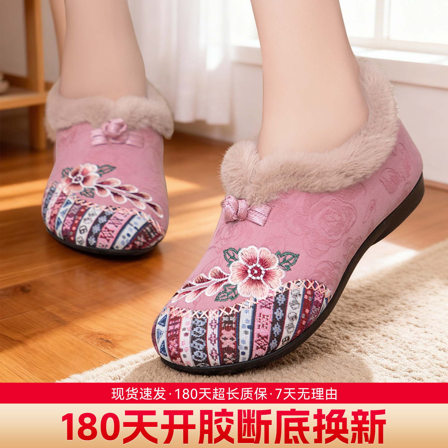 【叠加1.49陶琻币到手28.4亓/起】宽松不挤脚,胖脚、变形脚也能轻松驾驭!经典国风刺绣鞋面, 加绒加厚内里,厚实蓬松,面料透气亲肤!软底防滑+一脚蹬设计,中老年出门超安心!