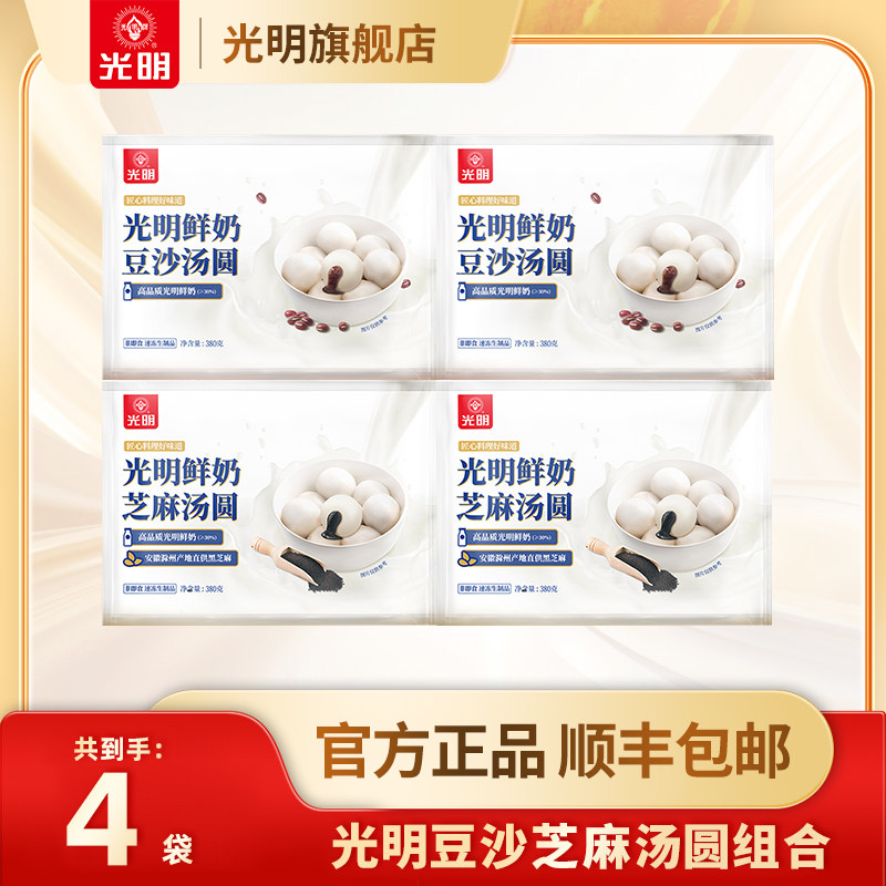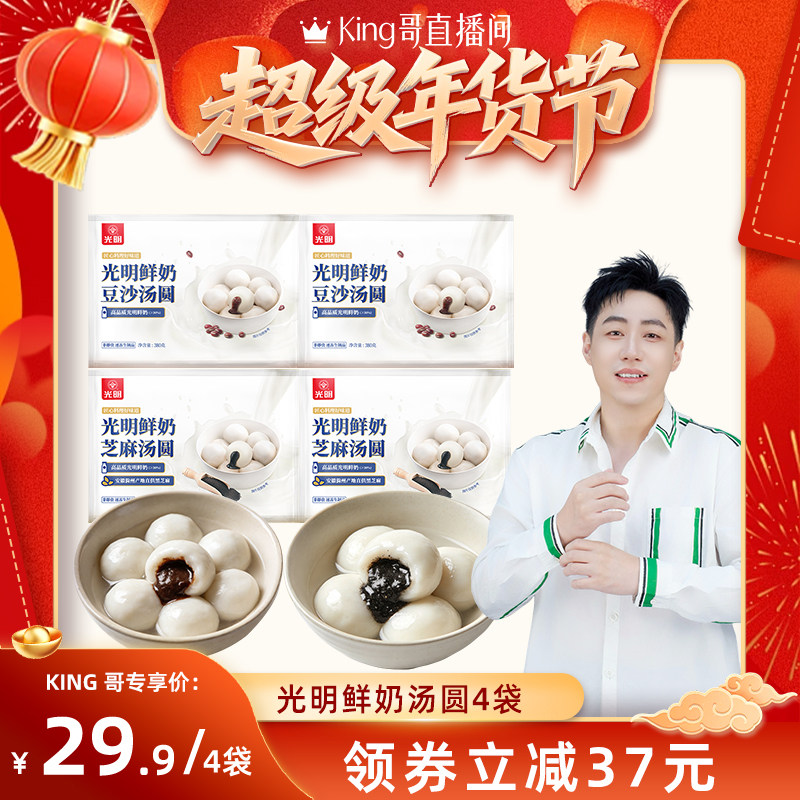 > [King哥直播间]光明鲜奶黑芝麻豆沙汤圆速冻元宵节早餐点心