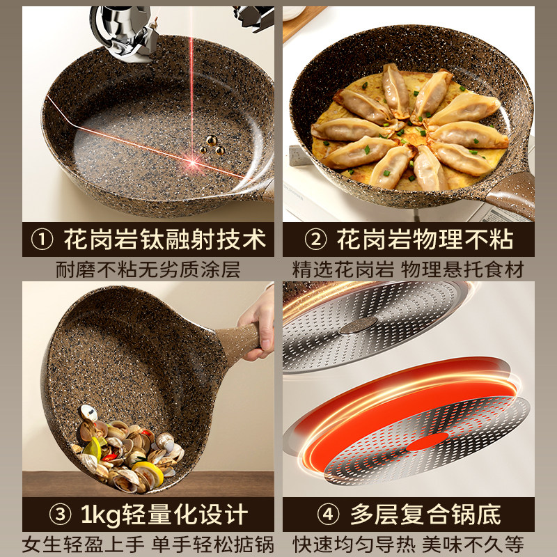 淘宝天猫amercook阿尔菲塔花岗岩钛不粘锅平底煎锅家用牛排锅电磁炉燃气灶优惠券折扣价格–彩云间