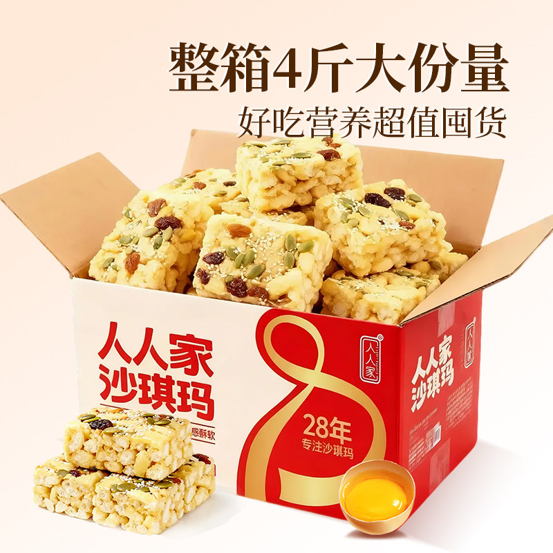 > 人人家山药坚果沙琪玛整箱中式早餐糕点办公休闲零食萨其马