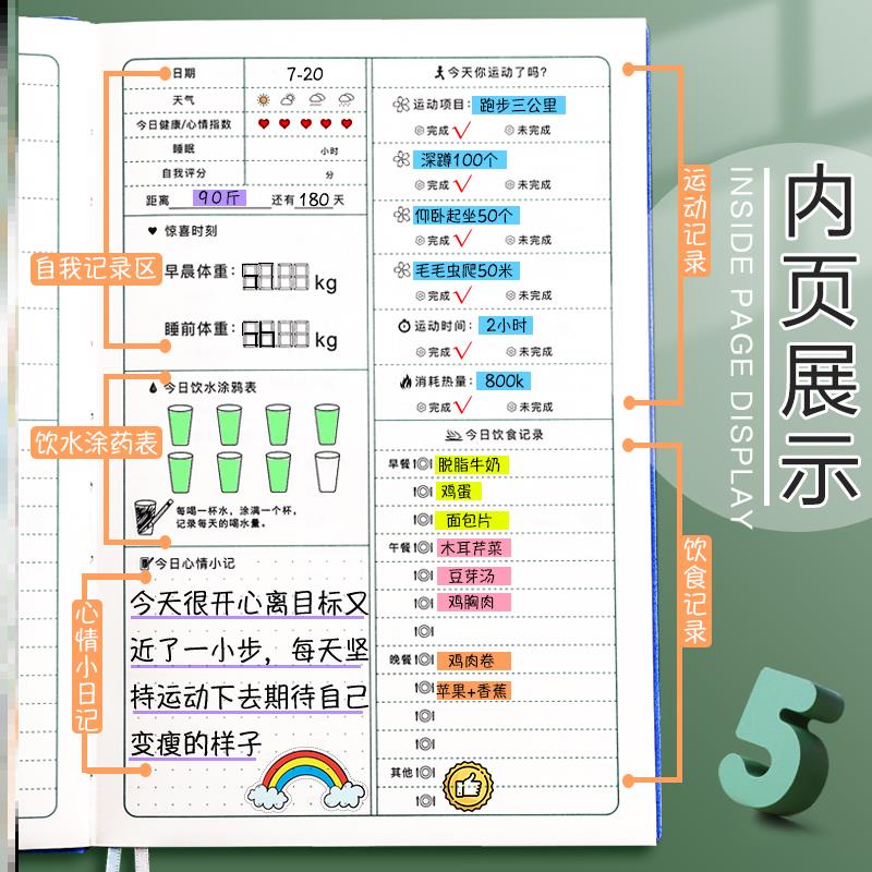 您的位置: 中年少女要减肥自律神器监督员减肥记录本打卡减肥计划本日记本