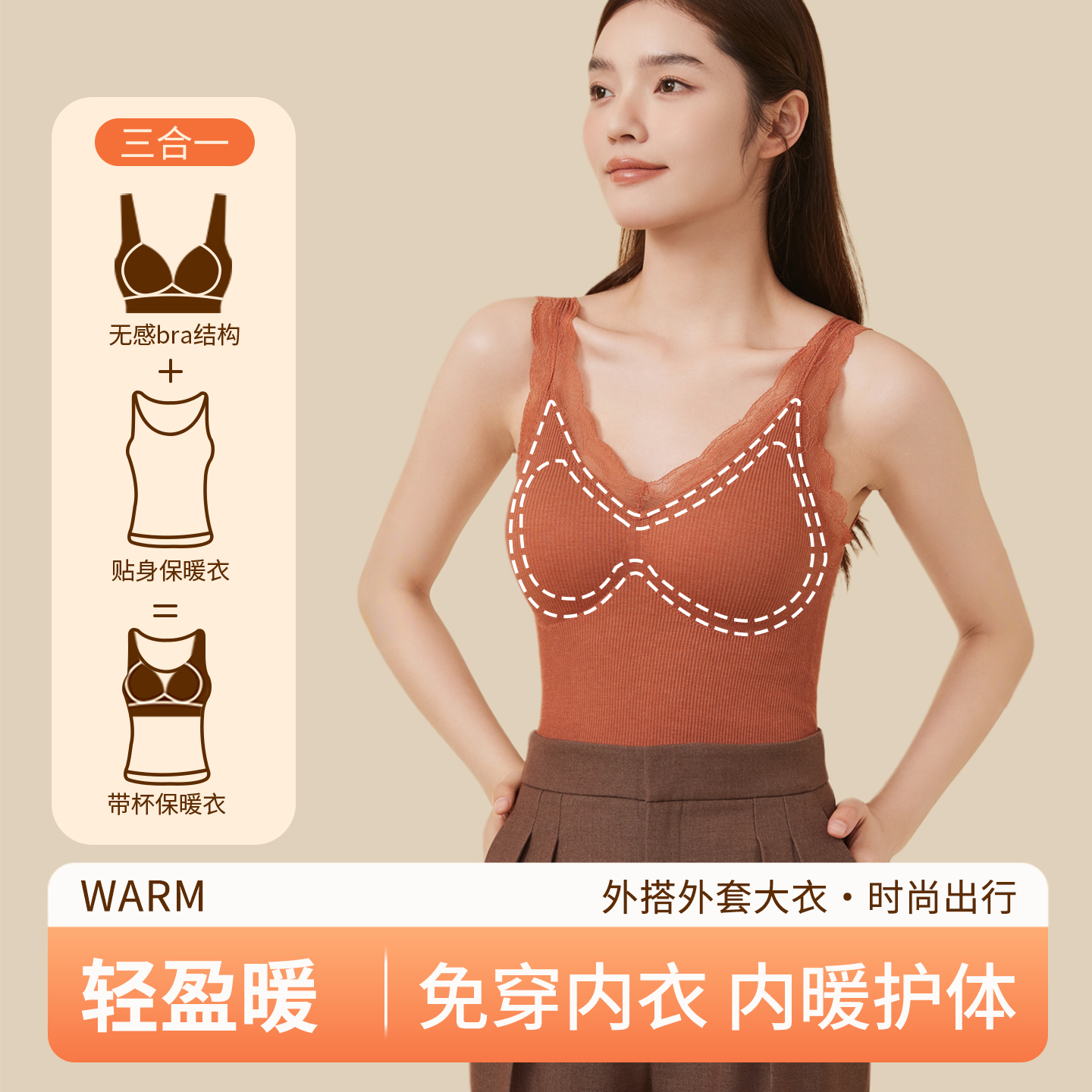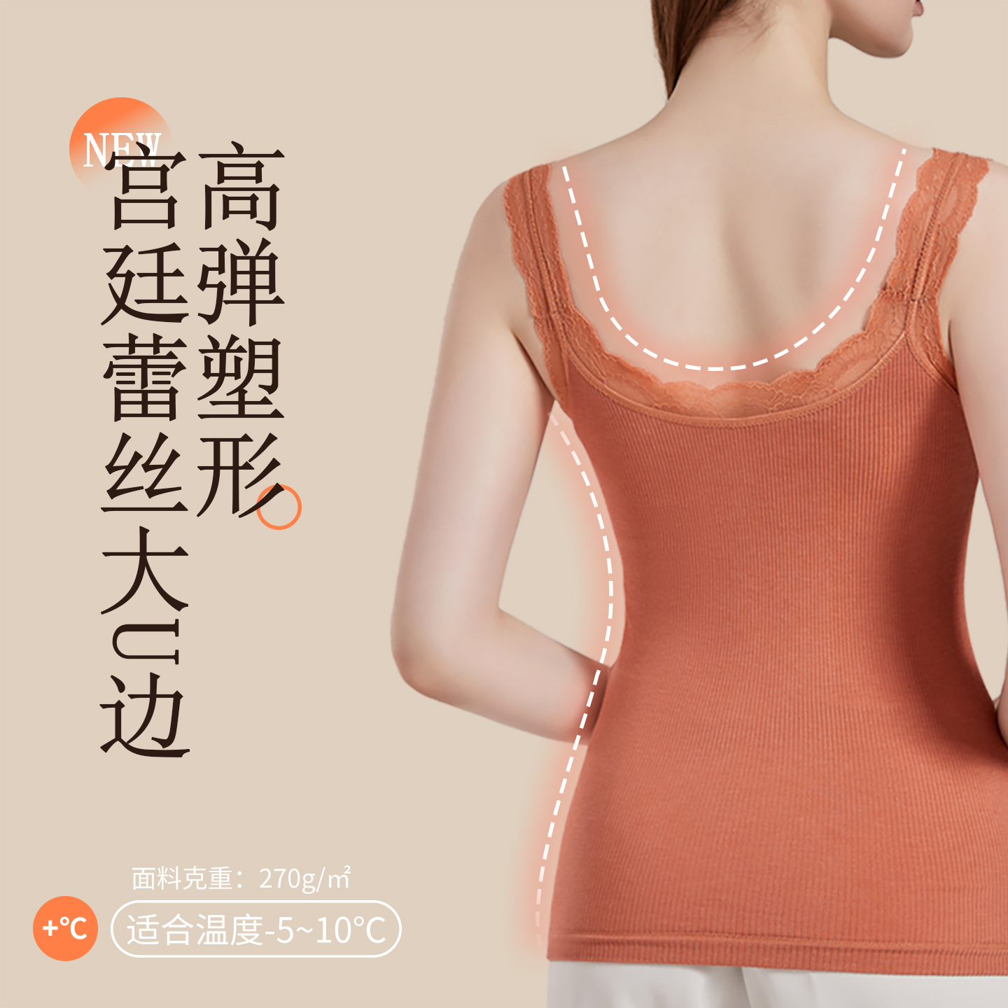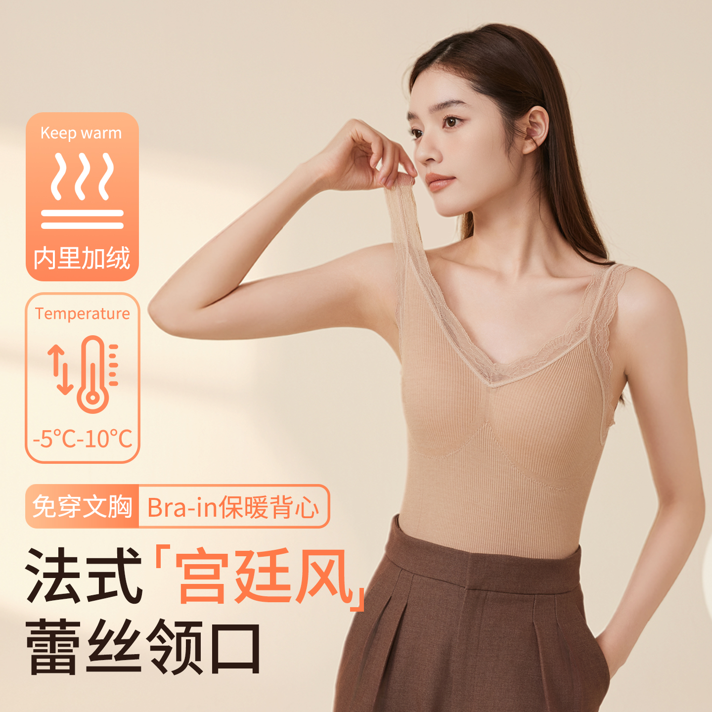法式宫廷风蕾丝领口,舒适保暖的秘密,内里加绒聚热锁温。免穿文胸,日常打底不臃肿高弹塑形。