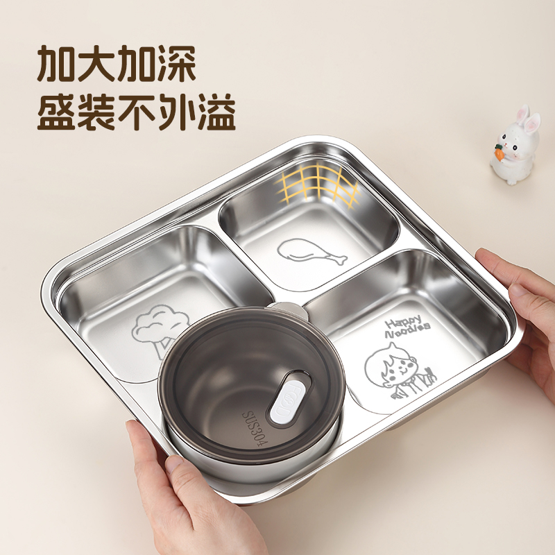 您的位置: 创意餐盘成人轻食减肥定量分隔盘儿童吃饭食盘抗菌316钢方形盘子