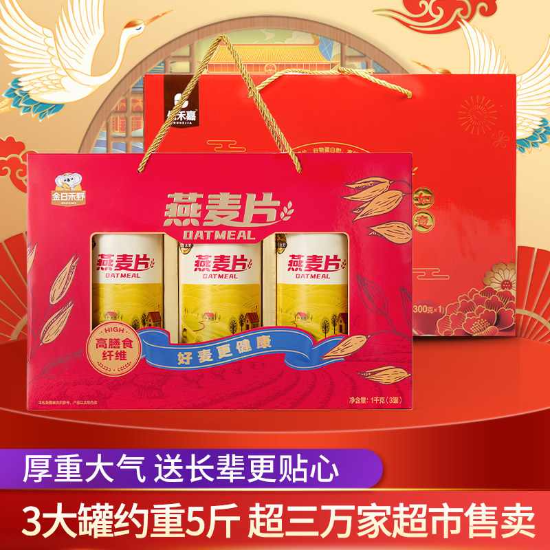 > 金日禾野中老年高钙燕麦片营养伴手礼盒中秋送长辈五谷杂粮营养品