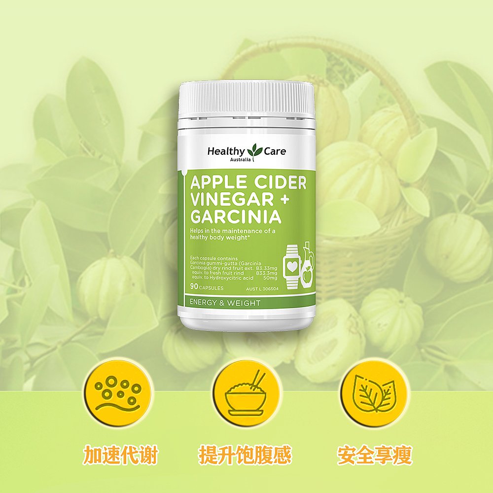 澳大利亚直邮healthy care苹果醋+藤黄果平衡营养身体健康90粒